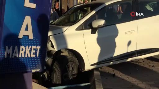 2 otomobil çarpıştı, araçlardan biri markete daldı