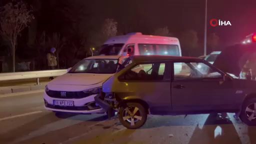 Bursa'da direksiyon hakimiyeti kaybedilen araç, önündeki 3 otomobile çarptı. Yaşanan kazada yaralanan olmazken, trafik bir süre tek şeritten ilerledi.