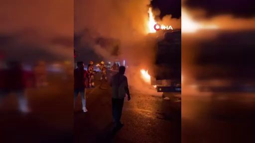 Bursa’da arı yüklü kamyon seyir halindeyken bir anda alev aldı. Kısa sürede büyüyen alevler kamyonun dorsesini sarınca hayvanlar telef oldu.