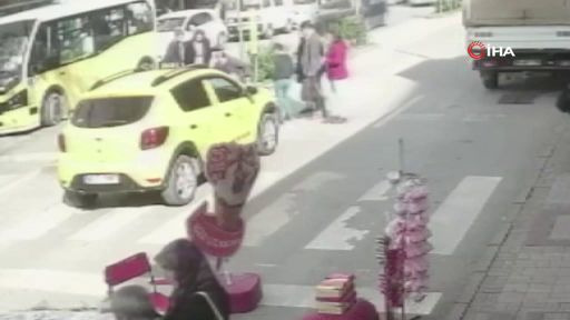 Bursa’da dalgın taksi sürücüsü halk otobüsünden inip yolun karşısına geçmek isteyen yaşlı çarptı. Kendine erken gelen şoför frenleyip durunca facianın eşiğinden dönüldü. O anlar bir işyeri kamerasına anbean yansıdı.