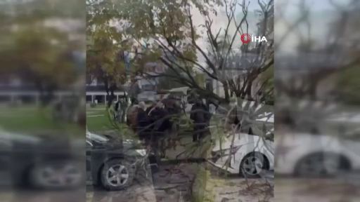 Bursa’da araçların üzerine devrilen ağaç korku dolu anlar yaşatırken, sadece maddi hasarın meydana gelmesi sevindirdi.