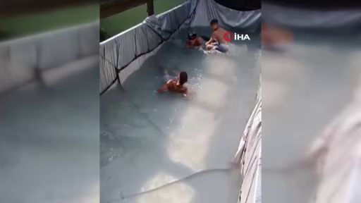 Bursa’nın merkez Osmangazi ilçesi Küçükbalıklı Mahallesi'nde çocuklar, hava sıcaklığının iyice artmasından bunalarak bir kamyonetin dorsesini havuza çevirdi. Dorseye muşamba seren çocuklar daha sonra dorseyi su ile doldurdu. Doldurdukları suda yüzen çocukların sevinci amatör kamera ile kaydedildi.