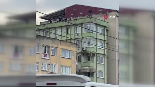 Saatlerdir çatıda bekleyen şahıs polis ekiplerinin ikna çabasıyla çatıdan indirilirken, şahsın eşiyle barışmak için çatıya çıktığı öğrenildi.
