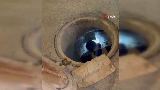 Bursa'da Kanalizasyonda mahsur kalan kedi böyle kurtarıldı