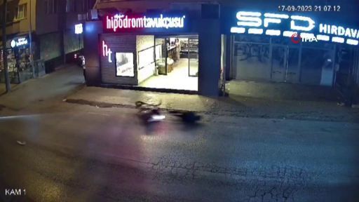 Bursa’da motosikletiyle bir başka motosikletliye çarpan sürücü ağır yaralandı. Kaza bir işyerinin güvenlik kamerasına yansıdı.