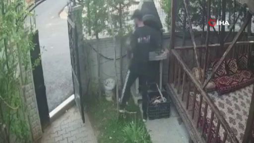 Bursa’da semaver ve kablo çalan şahıs evin kamerasına anbean yansıdı.