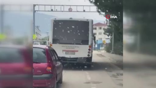 Bursa'da trafikte yan yan seyreden özel halk otobüsü kameralarda