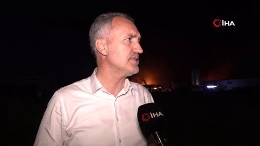 Bursa’nın İnegöl ilçesi Mareşal Fevzi Çakmak Caddesi'nde bulunan bir mobilya fabrikasında dün saat 16.25 sıralarında yangın çıktı. Rüzgarın şiddetiyle artan alevler 10 fabrikayı da kullanılamaz hale getirirken, yangına havadan ve karadan müdahale devam ediyor. İnegöl Belediye Başkanı Alper Taban sıcak bölgede canlı yayında İHA muhabirine bilgileri aktarırken patlama meydana geldi. Patlama anı canlı yayına saniye saniye yansıdı.