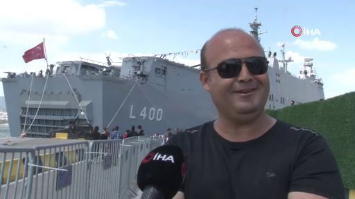 Dünyanın ilk silahlı insansız hava aracı TCG Anadolu'yu görmek isteyen binlerce İzmirli, bugün de uzun kuyruklar oluşturdu. Saatler süren bekleyişin ardından sıra kendisine gelen vatandaşlar, içeride gördükleriyle gurur duyduklarını belirtti.