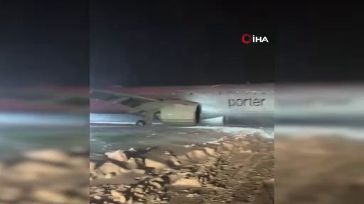 Kanada'da havalimanına 64 kişiyle iniş yapan yolcu uçağı, karla kaplı pistte kaydı. Yolcular pistten çıkan uçaktan 2 buçuk saat süren çalışmanın ardından tahliye edilebildi.