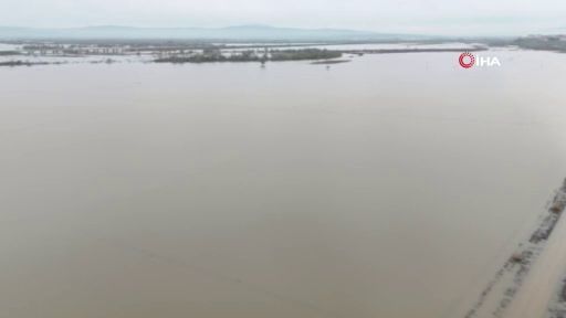 Bursa'nın Karacabey ilçesinde şiddetli yağışlar sebebiyle derelerin taşması sonucu Karacabey Ovası'nda 10 bin dönümden fazla tarım arazisi sular altında kaldı.