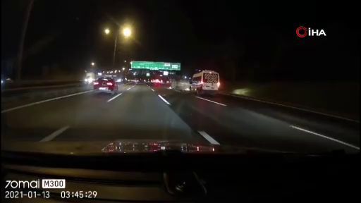 Kavacık'ta trafikte araçların arasından makas atarak ilerleyen bir otomobil, kontrolünü kaybederek aynı istikamette seyreden başka bir araca yandan çarptı. Şiddetli çarpmanın etkisiyle çarpılan araç takla atarak yola savrulurken, o anlar bir sürücünün araç içi kamerasına saniye saniye yansıdı. Kaza gece saatlerinde Kavacık Beykoz'da meydana geldi. TEM Otoyolu'nda seyir halindeki trafikte makas atarak ilerleyen bir araç adeta faciaya davetiye çıkardı. Araç içi kamerasına yansıyan görüntülerde, hızla makas atan otomobilin yan şeritte ilerleyen kamyonete çarparak takla attığı kaydedildi. Kaza nedeniyle trafikte kısa süreli yoğunluk yaşanırken, bölgede araçlar çekildikten sonra trafik normale döndü. Polis ekipleri tarafından kazayla ilgili inceleme başlatıldı.