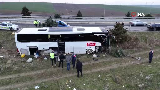 Çanakkale'nin Gelibolu ilçesinde Yunanistan'dan İzmir'e giden tur otobüsü, sürücünün direksiyon hakimiyetini kaybetmesiyle yoldan çıktı. 42 yolcunun bulunduğu otobüste 3'ü ağır olmak üzere 11 yolcu yaralandı.