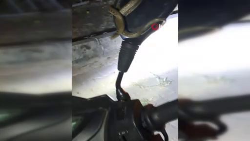 Kütahya'nın Domaniç ilçesinde park halindeki motosikletin direksiyon kısmına giren yılan paniğe sebep oldu. Olay, ilçeye bağlı Karşıyaka Mahallesi'ndeki Osman Gazi Camii yakınlarında yaşandı. Park halindeki motosikletin direksiyon kısmına giren yılanı fark eden sürücü Erdem Sarıca, aracı kullanmaktan vazgeçti. O anlarda herhangi bir tehlike yaşanmazken, çevrede toplanan vatandaşlar da şaşkınlıkla durumu izledi. Kısa bir süre sonra yılan ortadan kayboldu. İlçe genelinde yılanların sıkça görülmesi halk arasında tedirginliğe yol açarken, yetkililer yılanların zehirli olmadığı ve genellikle zararsız türler olduğuna dikkat çekti.