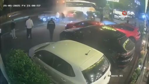 Başakşehir'de cadde üzerinde yolcu indiren otobüse hızla ilerleyen bir otomobil çarptı. Kaza anı güvenlik kamerası tarafından görüntülendi. Bir kişinin otomobil ile otobüs arasında kalmaktan son anda kurtulduğu görüldü.