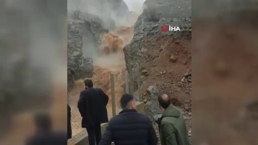 Şiddetli yağış sonrası şelale taştı